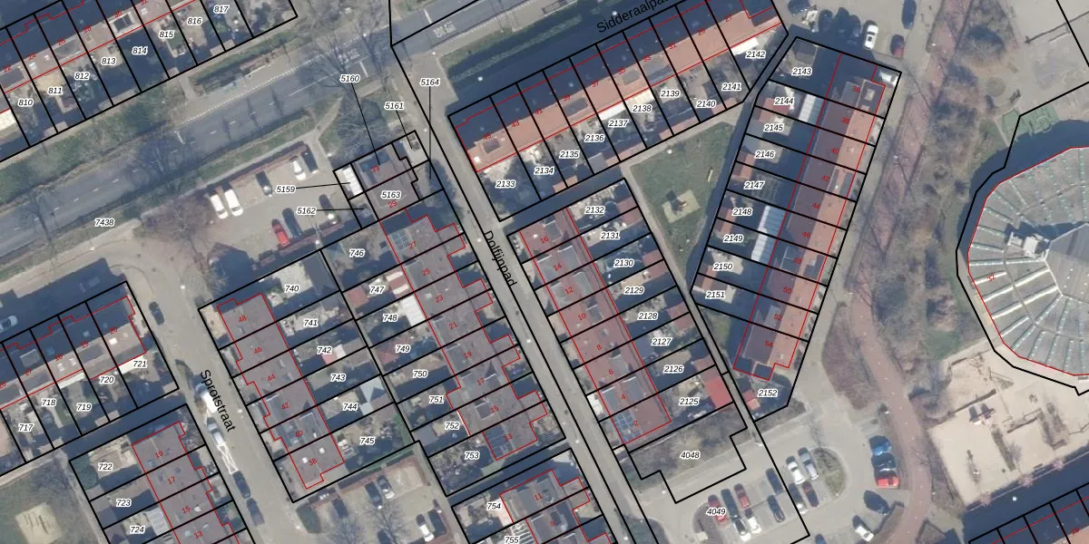 Gebruik de zoekbalk of klik op een perceel voor informatie over de adressen binnen dit perceel.