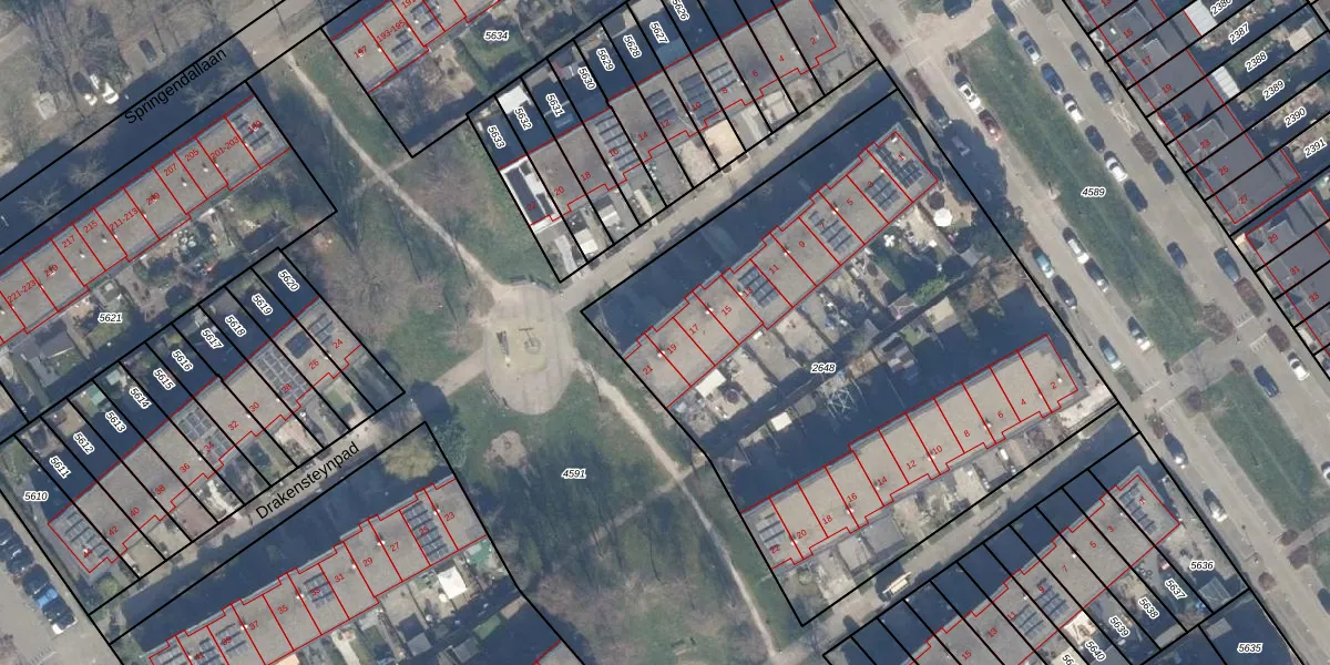 Het perceel waarop het adres ligt is AMR04-N-2648. De afkorting 'AMR04' staat voor kadastrale gemeente Almere. Het perceel is kleiner dan gemiddeld in Almere. Het perceel is 3282 m² groot, terwijl het gemiddelde ligt op 3329,36 m². De grootste perceeloppervlakte in de kadastrale gemeente is 32,12 km². De kleinste oppervlakte bedraagt 0 m². Er zijn 22 adressen aanwezig op het perceel. De huidige grenzen van het perceel zijn digitaal in de Basisregistratie Kadaster (BRK) geregistreerd op 20-08-1997.