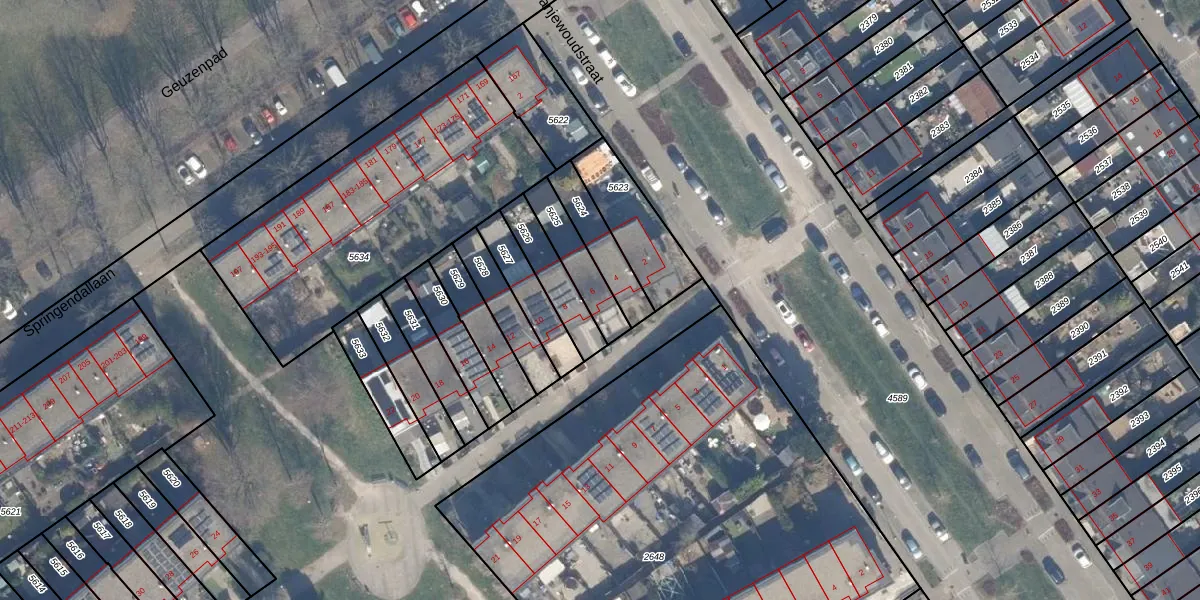 Het perceel waarop het adres ligt is AMR04-N-5625. De afkorting 'AMR04' staat voor kadastrale gemeente Almere. Het perceel is kleiner dan gemiddeld in Almere. Het perceel is 139 m² groot, terwijl het gemiddelde ligt op 3329,36 m². Het kleinste perceel in de kadastrale gemeente is 0 m² groot. De grootste perceeloppervlakte is 32,12 km². Dit is het enige adres dat aanwezig is op het perceel. In de Basisregistratie Kadaster (BRK) werden de grenzen van het perceel geregistreerd op 28-03-2000.