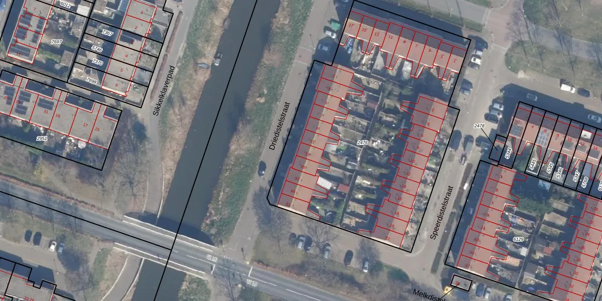 Het perceel waarop Driedistelstraat 13 staat heeft een oppervlakte van 3506 m². Dit is een zeer groot perceel. De perceeloppervlakte wordt geregistreerd door het Kadaster. Gedetailleerde informatie over de maten van dit perceel kunt u vinden in het rapport Kadastrale kaart met maatvoering van Driedistelstraat 13.