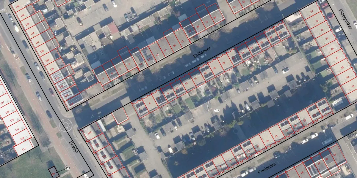 Het perceel waarop Drijfanker 10 staat heeft een oppervlakte van 9436 m². Dit is een zeer groot perceel. De perceeloppervlakte wordt geregistreerd door het Kadaster. Gedetailleerde informatie over de maten van dit perceel kunt u vinden in het rapport Kadastrale kaart met maatvoering van Drijfanker 10.