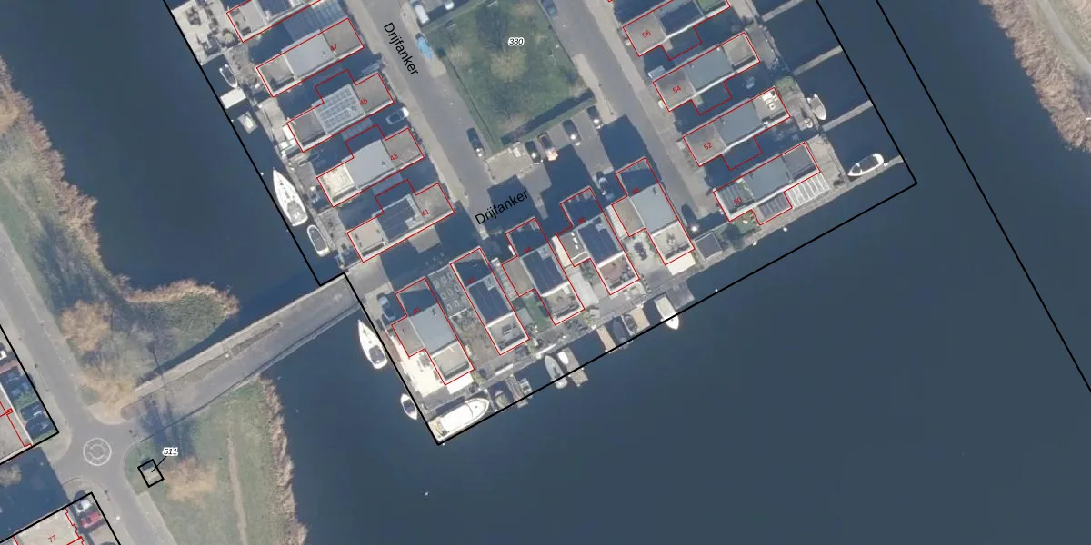 Het perceel waarop Drijfanker 44 staat heeft een oppervlakte van 1,1 ha. Dit is een zeer groot perceel. De perceeloppervlakte wordt geregistreerd door het Kadaster. Gedetailleerde informatie over de maten van dit perceel kunt u vinden in het rapport Kadastrale kaart met maatvoering van Drijfanker 44.