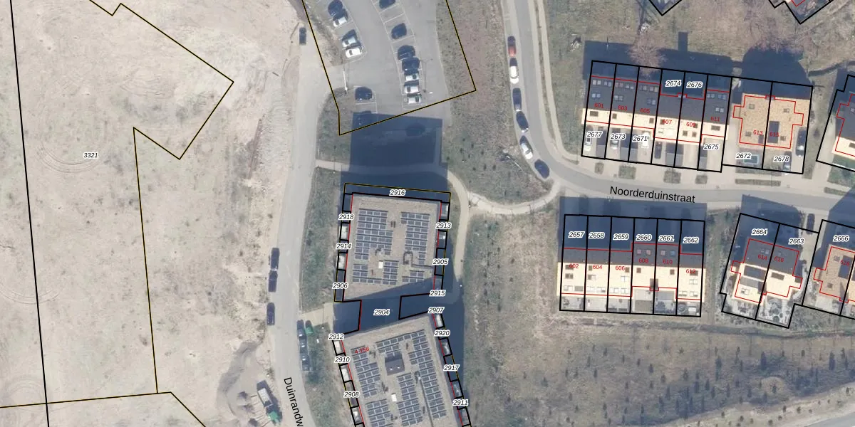 Duinrandweg 106 is gelegen op kadastraal perceel AMR04F2904. Deze kadastrale aanduiding is uniek en wordt gebruikt door het Kadaster om eigendomsrechten en andere zakelijke rechten vast te leggen. Het perceel maakt onderdeel uit van de kadastrale gemeente Almere.