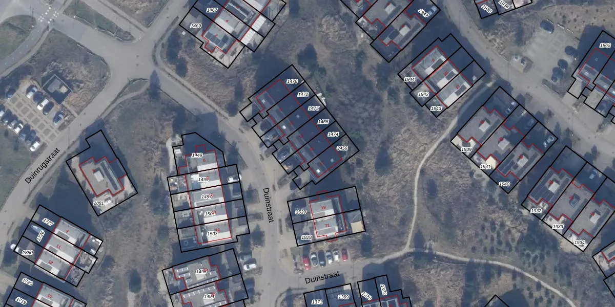 Gebruik de zoekbalk of klik op een perceel voor informatie over de adressen binnen dit perceel.