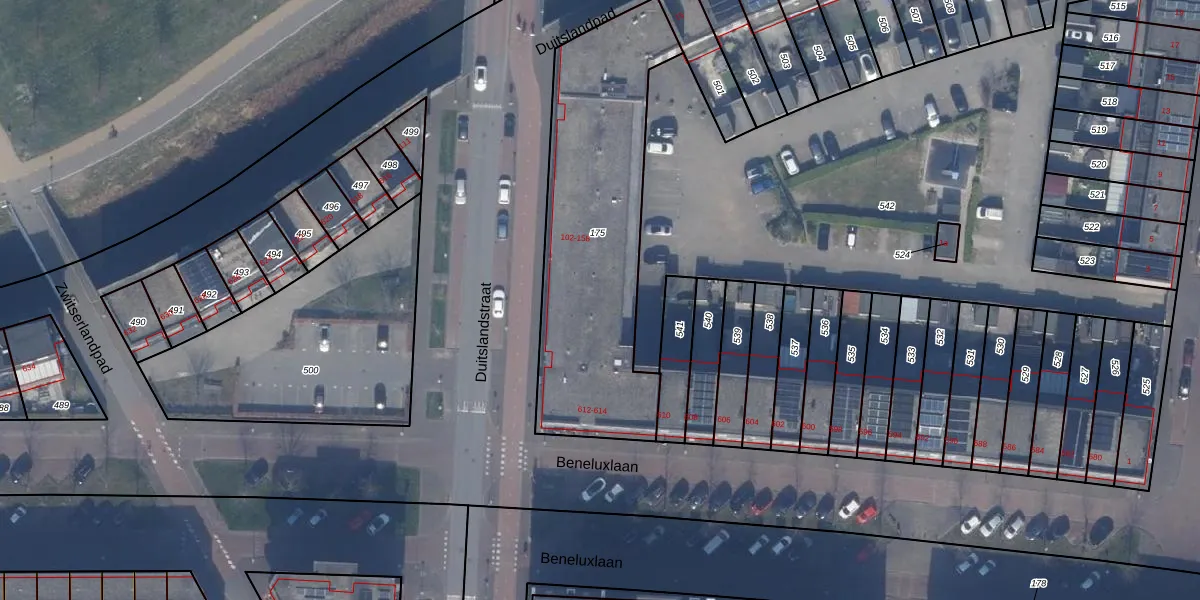 Het perceel waarop Duitslandstraat 104 staat heeft een oppervlakte van 1177 m². Dit is een zeer groot perceel. De perceeloppervlakte wordt geregistreerd door het Kadaster. Gedetailleerde informatie over de maten van dit perceel kunt u vinden in het rapport Kadastrale kaart met maatvoering van Duitslandstraat 104.