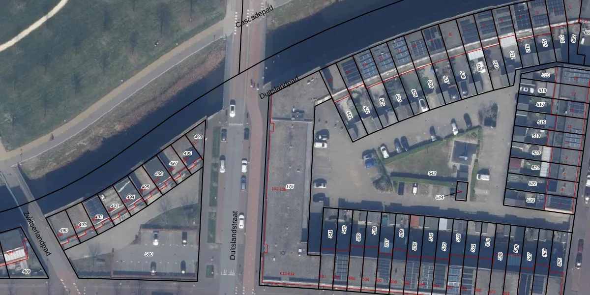 Het perceel waarop Duitslandstraat 110 staat heeft een oppervlakte van 1177 m². Dit is een zeer groot perceel. De perceeloppervlakte wordt geregistreerd door het Kadaster. Gedetailleerde informatie over de maten van dit perceel kunt u vinden in het rapport Kadastrale kaart met maatvoering van Duitslandstraat 110.