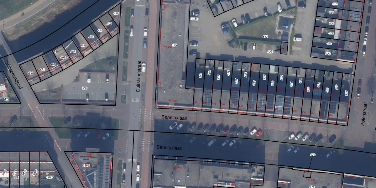 Het perceel waarop Duitslandstraat 116 staat heeft een oppervlakte van 1177 m². Dit is een zeer groot perceel. De perceeloppervlakte wordt geregistreerd door het Kadaster. Gedetailleerde informatie over de maten van dit perceel kunt u vinden in het rapport Kadastrale kaart met maatvoering van Duitslandstraat 116.