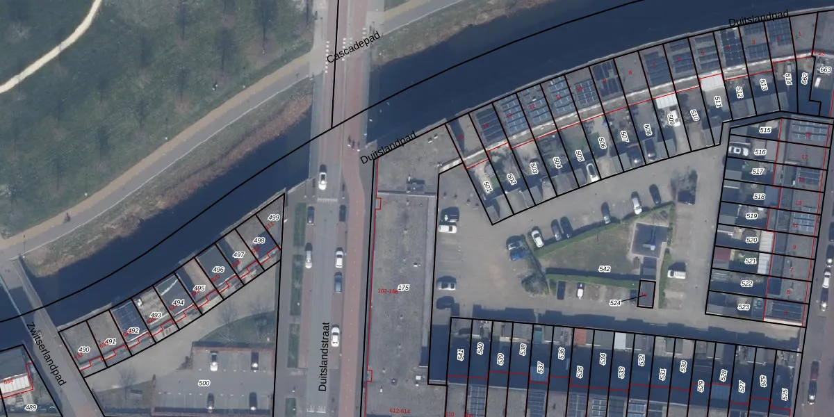 Het perceel waarop Duitslandstraat 130 staat heeft een oppervlakte van 1177 m². Dit is een zeer groot perceel. De perceeloppervlakte wordt geregistreerd door het Kadaster. Gedetailleerde informatie over de maten van dit perceel kunt u vinden in het rapport Kadastrale kaart met maatvoering van Duitslandstraat 130.
