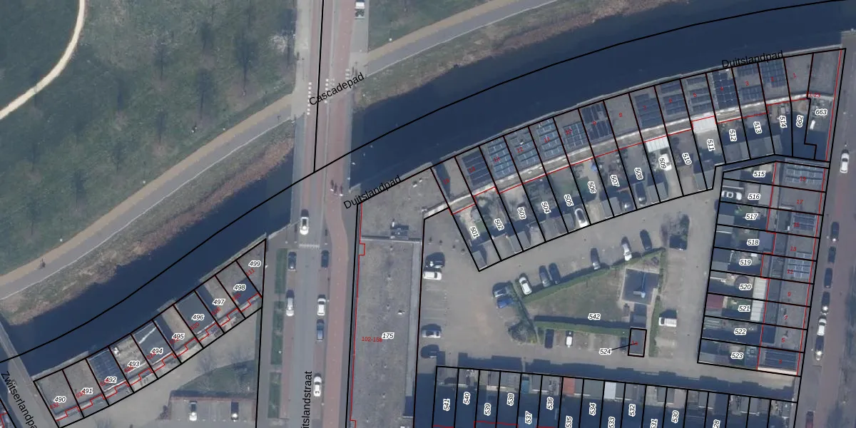 Het perceel waarop Duitslandstraat 158 staat heeft een oppervlakte van 1177 m². Dit is een zeer groot perceel. De perceeloppervlakte wordt geregistreerd door het Kadaster. Gedetailleerde informatie over de maten van dit perceel kunt u vinden in het rapport Kadastrale kaart met maatvoering van Duitslandstraat 158.