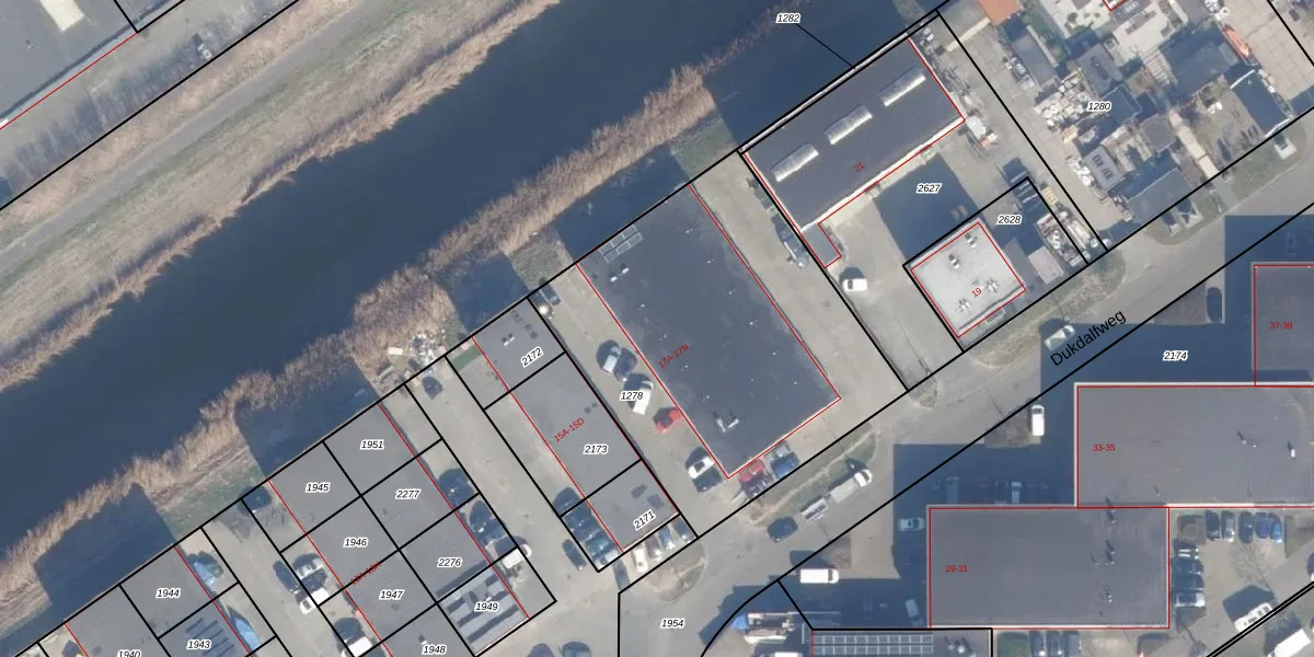 Het perceel waarop Dukdalfweg 17-E staat heeft een oppervlakte van 1758 m². Dit is een zeer groot perceel. De perceeloppervlakte wordt geregistreerd door het Kadaster. Gedetailleerde informatie over de maten van dit perceel kunt u vinden in het rapport Kadastrale kaart met maatvoering van Dukdalfweg 17-E.