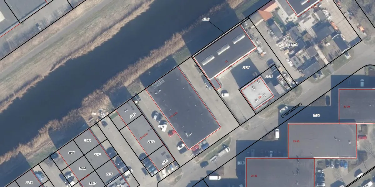 Het perceel waarop Dukdalfweg 17-L staat heeft een oppervlakte van 1758 m². Dit is een zeer groot perceel. De perceeloppervlakte wordt geregistreerd door het Kadaster. Gedetailleerde informatie over de maten van dit perceel kunt u vinden in het rapport Kadastrale kaart met maatvoering van Dukdalfweg 17-L.
