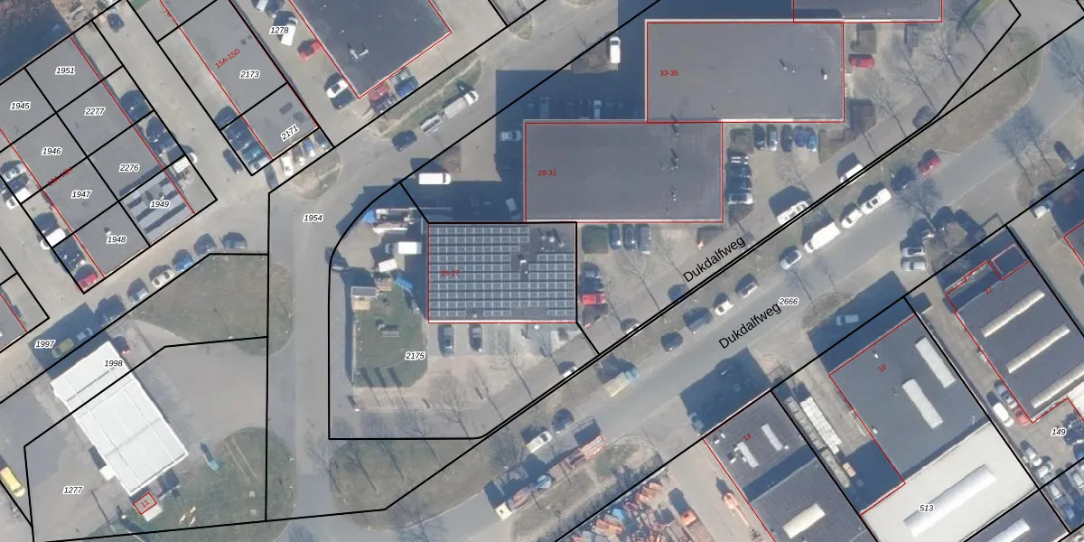 Dukdalfweg 25 is gelegen op kadastraal perceel AMR04M2175. Deze kadastrale aanduiding is uniek en wordt gebruikt door het Kadaster om eigendomsrechten en andere zakelijke rechten vast te leggen. Het perceel maakt onderdeel uit van de kadastrale gemeente Almere.