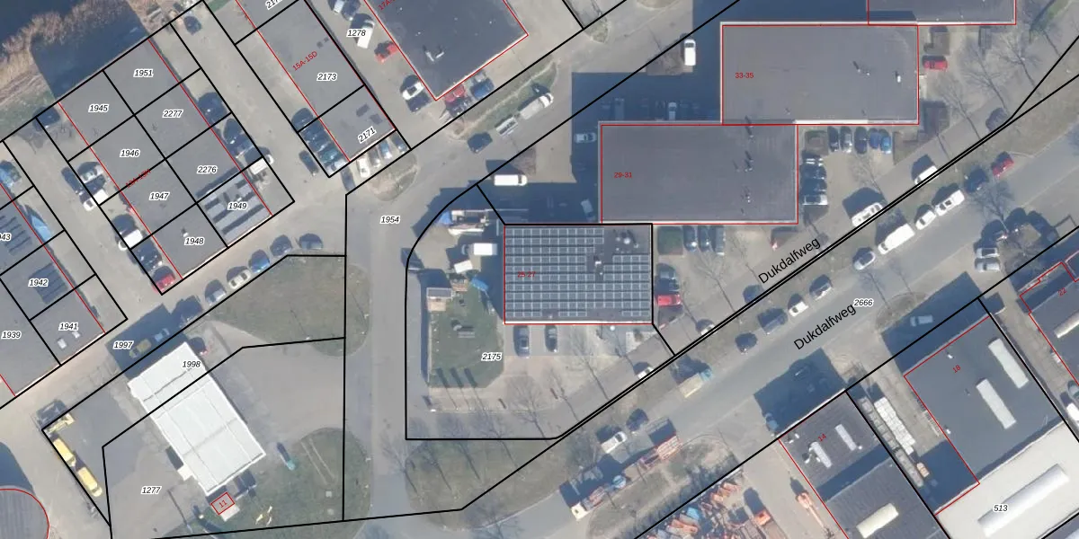 Dukdalfweg 27 is gelegen op kadastraal perceel AMR04M2175. Deze kadastrale aanduiding is uniek en wordt gebruikt door het Kadaster om eigendomsrechten en andere zakelijke rechten vast te leggen. Het perceel maakt onderdeel uit van de kadastrale gemeente Almere.