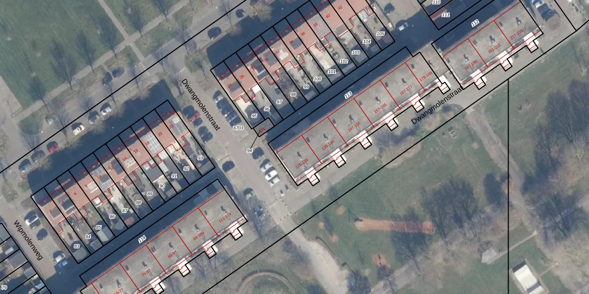 Het perceel waarop Dwangmolenstraat 131 staat heeft een oppervlakte van 1094 m². Dit is een zeer groot perceel. De perceeloppervlakte wordt geregistreerd door het Kadaster. Gedetailleerde informatie over de maten van dit perceel kunt u vinden in het rapport Kadastrale kaart met maatvoering van Dwangmolenstraat 131.