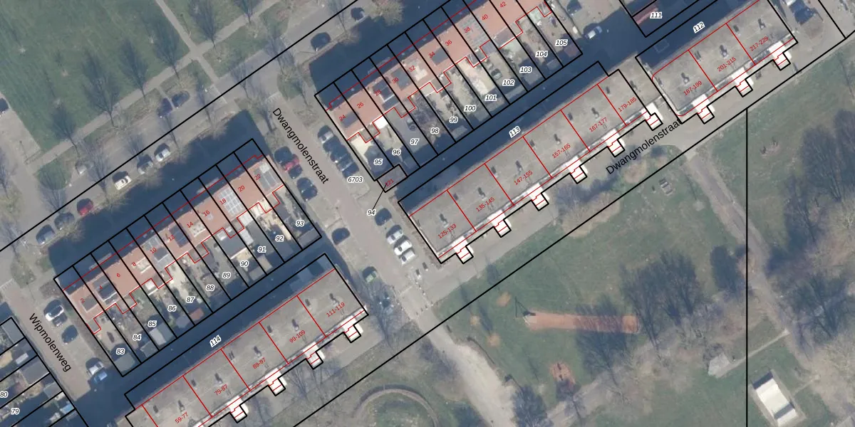 Het perceel waarop Dwangmolenstraat 133 staat heeft een oppervlakte van 1094 m². Dit is een zeer groot perceel. De perceeloppervlakte wordt geregistreerd door het Kadaster. Gedetailleerde informatie over de maten van dit perceel kunt u vinden in het rapport Kadastrale kaart met maatvoering van Dwangmolenstraat 133.
