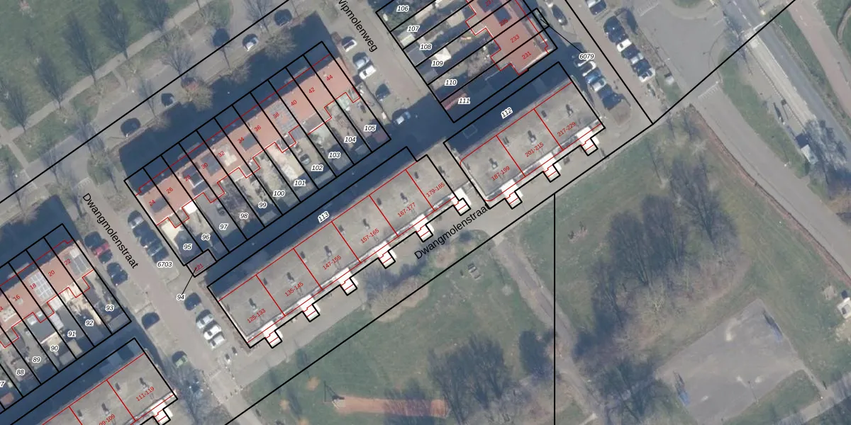 Het perceel waarop Dwangmolenstraat 177 staat heeft een oppervlakte van 1094 m². Dit is een zeer groot perceel. De perceeloppervlakte wordt geregistreerd door het Kadaster. Gedetailleerde informatie over de maten van dit perceel kunt u vinden in het rapport Kadastrale kaart met maatvoering van Dwangmolenstraat 177.