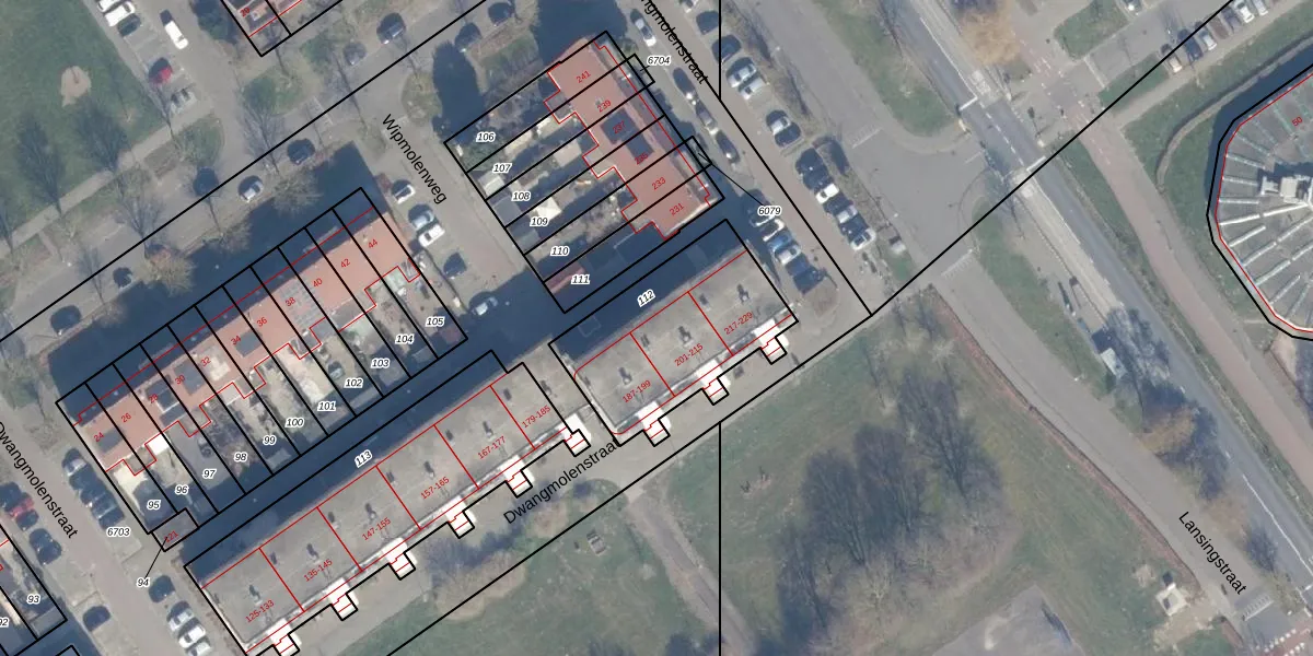 Dwangmolenstraat 213 is gelegen op kadastraal perceel AMR04N112. Deze kadastrale aanduiding is uniek en wordt gebruikt door het Kadaster om eigendomsrechten en andere zakelijke rechten vast te leggen. Het perceel maakt onderdeel uit van de kadastrale gemeente Almere.