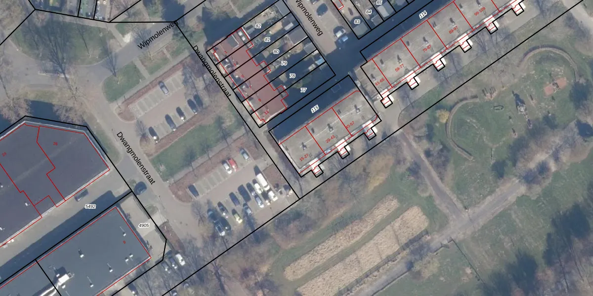 Het perceel waarop Dwangmolenstraat 23 staat heeft een oppervlakte van 653 m². Dit is een groot perceel. De perceeloppervlakte wordt geregistreerd door het Kadaster. Gedetailleerde informatie over de maten van dit perceel kunt u vinden in het rapport Kadastrale kaart met maatvoering van Dwangmolenstraat 23.