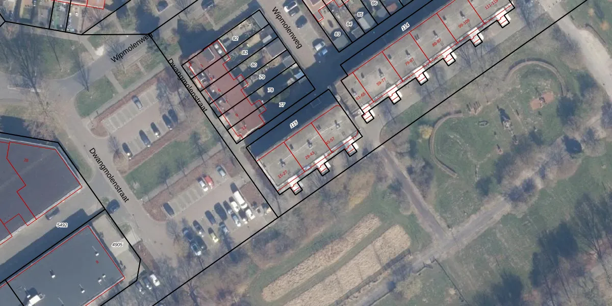 Het perceel waarop Dwangmolenstraat 33 staat heeft een oppervlakte van 653 m². Dit is een groot perceel. De perceeloppervlakte wordt geregistreerd door het Kadaster. Gedetailleerde informatie over de maten van dit perceel kunt u vinden in het rapport Kadastrale kaart met maatvoering van Dwangmolenstraat 33.