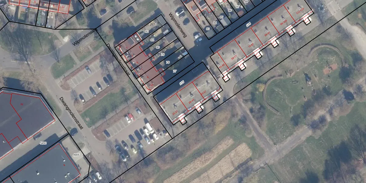 Het perceel waarop Dwangmolenstraat 41 staat heeft een oppervlakte van 653 m². Dit is een groot perceel. De perceeloppervlakte wordt geregistreerd door het Kadaster. Gedetailleerde informatie over de maten van dit perceel kunt u vinden in het rapport Kadastrale kaart met maatvoering van Dwangmolenstraat 41.