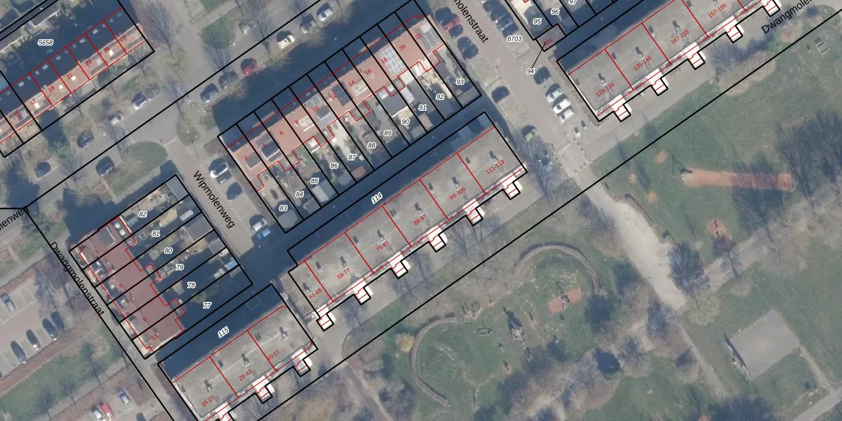 Het perceel waarop Dwangmolenstraat 93 staat heeft een oppervlakte van 1095 m². Dit is een zeer groot perceel. De perceeloppervlakte wordt geregistreerd door het Kadaster. Gedetailleerde informatie over de maten van dit perceel kunt u vinden in het rapport Kadastrale kaart met maatvoering van Dwangmolenstraat 93.