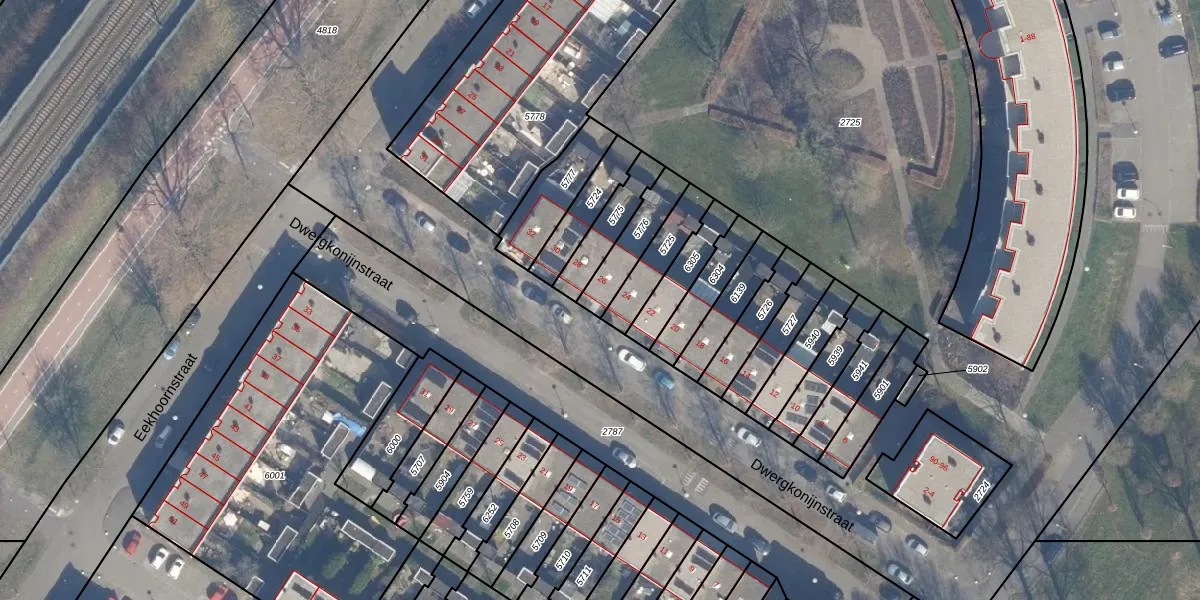Dwergkonijnstraat 26 is gelegen op kadastraal perceel AMR04N5776. Deze kadastrale aanduiding is uniek en wordt gebruikt door het Kadaster om eigendomsrechten en andere zakelijke rechten vast te leggen. Het perceel maakt onderdeel uit van de kadastrale gemeente Almere.