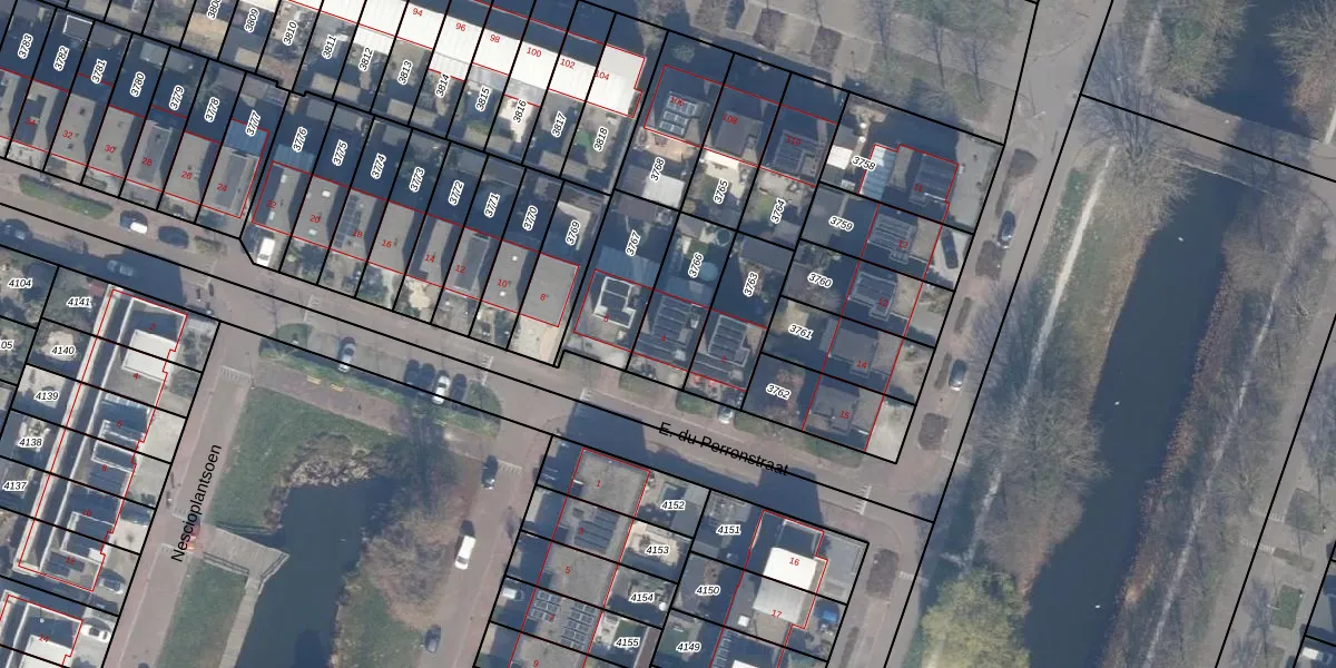 Het perceel waarop E. du Perronstraat 4 staat heeft een oppervlakte van 227 m². Dit is een middelgroot perceel. De perceeloppervlakte wordt geregistreerd door het Kadaster. Gedetailleerde informatie over de maten van dit perceel kunt u vinden in het rapport Kadastrale kaart met maatvoering van E. du Perronstraat 4.