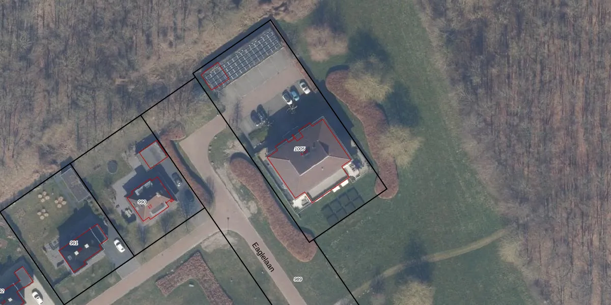 Het perceel waarop Eaglelaan 12 staat heeft een oppervlakte van 2079 m². Dit is een zeer groot perceel. De perceeloppervlakte wordt geregistreerd door het Kadaster. Gedetailleerde informatie over de maten van dit perceel kunt u vinden in het rapport Kadastrale kaart met maatvoering van Eaglelaan 12.