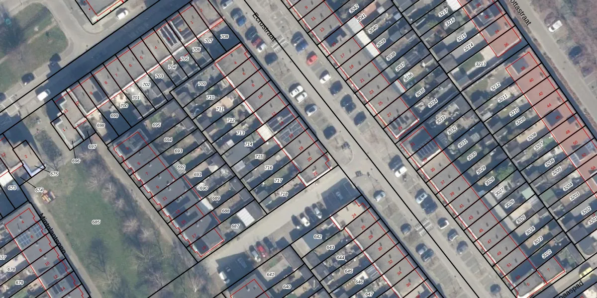 Gebruik de zoekbalk of klik op een perceel voor informatie over de adressen binnen dit perceel.