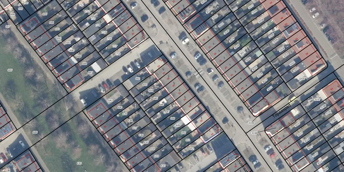 Het perceel waarop het adres ligt is AMR04-B-645. De afkorting 'AMR04' staat voor kadastrale gemeente Almere. Het perceel is kleiner dan gemiddeld in Almere. Het perceel is 151 m² groot, terwijl het gemiddelde ligt op 3330,42 m². Het kleinste perceel in de kadastrale gemeente is 0 m² groot. De grootste perceeloppervlakte is 32,12 km². Dit is het enige adres dat aanwezig is op het perceel. De laatste wijziging in het de Basisregistratie Kadaster (BRK) was op 20-08-1997.