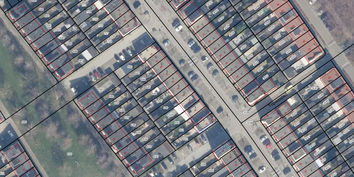 Het perceel waarop het adres ligt is AMR04-B-647. De afkorting 'AMR04' staat voor kadastrale gemeente Almere. Het perceel is kleiner dan gemiddeld in Almere. Het perceel is 152 m² groot, terwijl het gemiddelde ligt op 3330,42 m². Het kleinste perceel in de kadastrale gemeente is 0 m² groot. De grootste perceeloppervlakte is 32,12 km². Dit is het enige adres dat aanwezig is op het perceel. De huidige grenzen van het perceel zijn digitaal in de Basisregistratie Kadaster (BRK) geregistreerd op 20-08-1997.