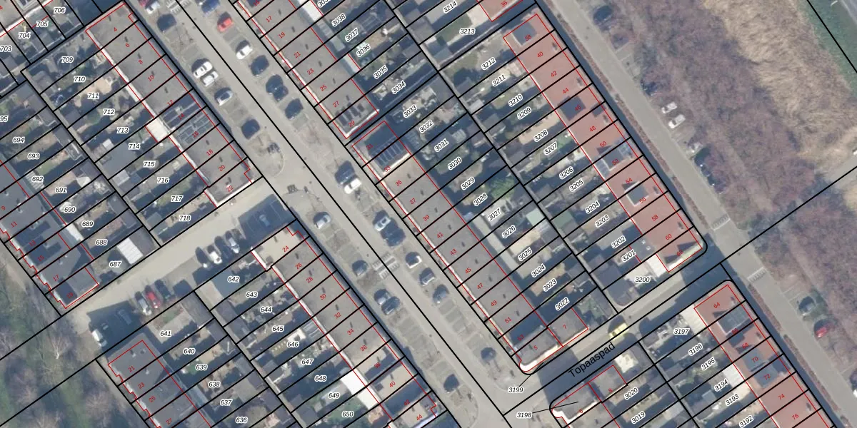 Het perceel waarop het adres ligt is AMR04-B-3029. De afkorting 'AMR04' staat voor kadastrale gemeente Almere. Het perceel is kleiner dan gemiddeld in Almere. Het perceel is 139 m² groot, terwijl het gemiddelde ligt op 3329,36 m². De grootste perceeloppervlakte in de kadastrale gemeente is 32,12 km². De kleinste oppervlakte bedraagt 0 m². Er zijn geen andere adressen aanwezig op het perceel. In de Basisregistratie Kadaster (BRK) werden de grenzen van het perceel geregistreerd op 16-08-2000.