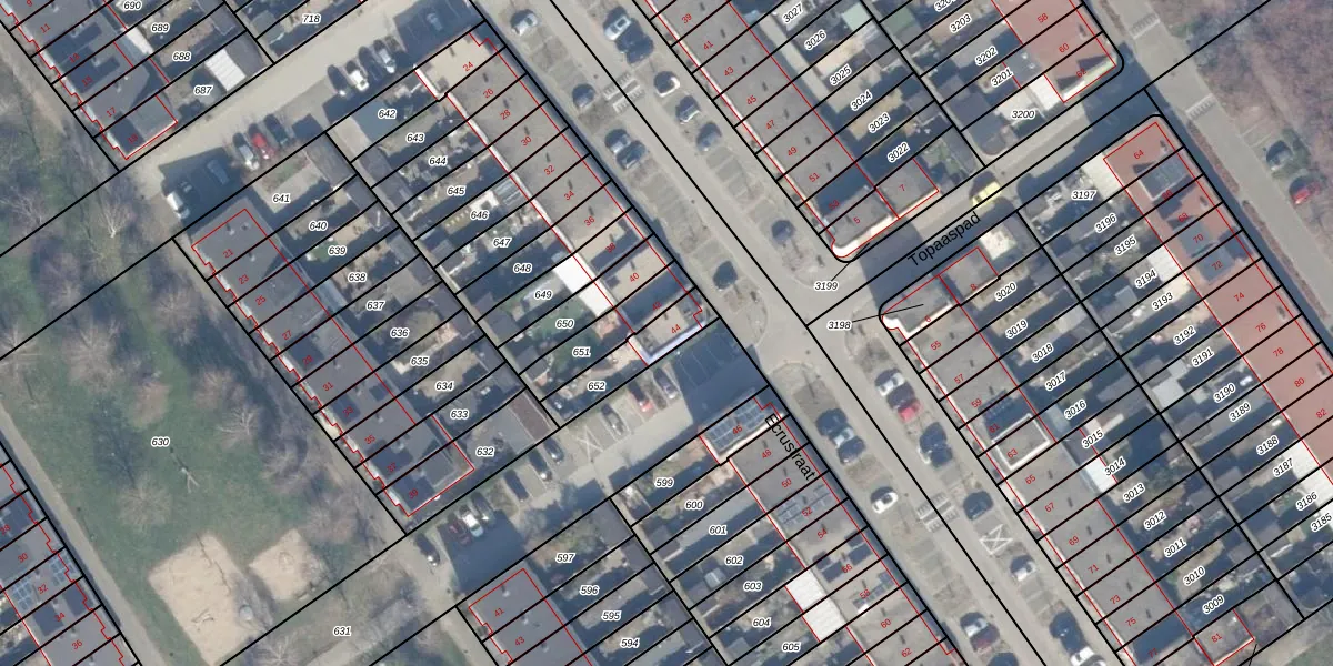 Het perceel waarop het adres ligt is AMR04-B-652. De afkorting 'AMR04' staat voor kadastrale gemeente Almere. Het perceel is kleiner dan gemiddeld in Almere. Het perceel is 153 m² groot, terwijl het gemiddelde ligt op 3330,42 m². Het kleinste perceel in de kadastrale gemeente is 0 m² groot. De grootste perceeloppervlakte is 32,12 km². Er zijn geen andere adressen aanwezig op het perceel. In de Basisregistratie Kadaster (BRK) werden de grenzen van het perceel geregistreerd op 20-08-1997.