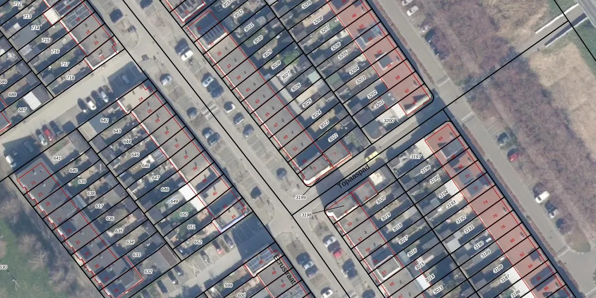 Het perceel waarop het adres ligt is AMR04-B-3023. De afkorting 'AMR04' staat voor kadastrale gemeente Almere. Het perceel is kleiner dan gemiddeld in Almere. Het perceel is 135 m² groot, terwijl het gemiddelde ligt op 3329,36 m². De grootste perceeloppervlakte in de kadastrale gemeente is 32,12 km². De kleinste oppervlakte bedraagt 0 m². Op het perceel bevinden zich geen andere adressen. In de Basisregistratie Kadaster (BRK) werden de grenzen van het perceel geregistreerd op 16-08-2000.