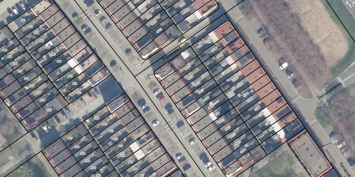 Gebruik de zoekbalk of klik op een perceel voor informatie over de adressen binnen dit perceel.
