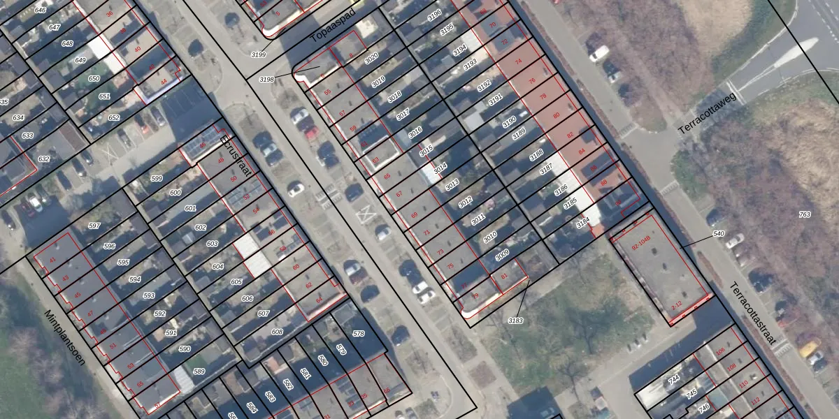Het perceel waarop het adres ligt is AMR04-B-3013. De afkorting 'AMR04' staat voor kadastrale gemeente Almere. Het perceel is kleiner dan gemiddeld in Almere. Het perceel is 133 m² groot, terwijl het gemiddelde ligt op 3329,36 m². De grootste perceeloppervlakte in de kadastrale gemeente is 32,12 km². De kleinste oppervlakte bedraagt 0 m². Op het perceel bevinden zich geen andere adressen. In de Basisregistratie Kadaster (BRK) werden de grenzen van het perceel geregistreerd op 16-08-2000.