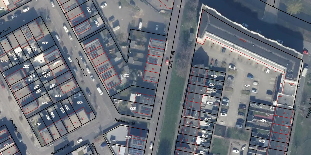 Eddastraat 12 is gelegen op kadastraal perceel AMR04W3082. Deze kadastrale aanduiding is uniek en wordt gebruikt door het Kadaster om eigendomsrechten en andere zakelijke rechten vast te leggen. Het perceel maakt onderdeel uit van de kadastrale gemeente Almere.