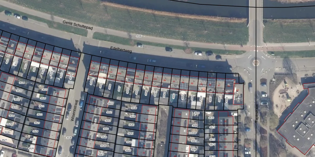 Gebruik de zoekbalk of klik op een perceel voor informatie over de adressen binnen dit perceel.