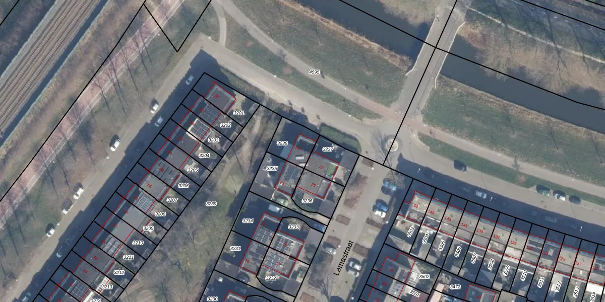 Het perceel waarop het adres ligt is AMR04-N-3238. De afkorting 'AMR04' staat voor kadastrale gemeente Almere. Het perceel is kleiner dan gemiddeld in Almere. Het perceel is 174 m² groot, terwijl het gemiddelde ligt op 3327,62 m². Het grootste perceel in de kadastrale gemeente is 32,12 km². Het kleinste perceel heeft een oppervlakte van 0 m². Dit is het enige adres dat aanwezig is op het perceel. De laatste wijziging in het de Basisregistratie Kadaster (BRK) was op 20-08-1997.