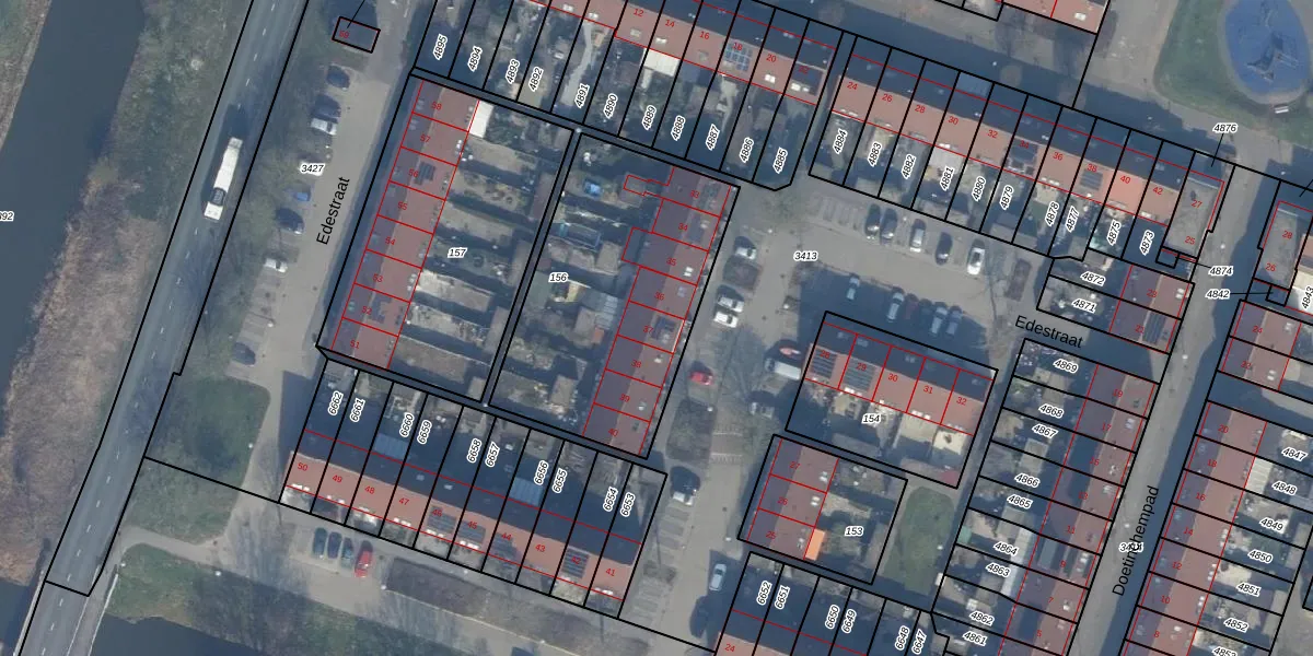 Edestraat 37 is gelegen op kadastraal perceel AMR04K156. Deze kadastrale aanduiding is uniek en wordt gebruikt door het Kadaster om eigendomsrechten en andere zakelijke rechten vast te leggen. Het perceel maakt onderdeel uit van de kadastrale gemeente Almere.