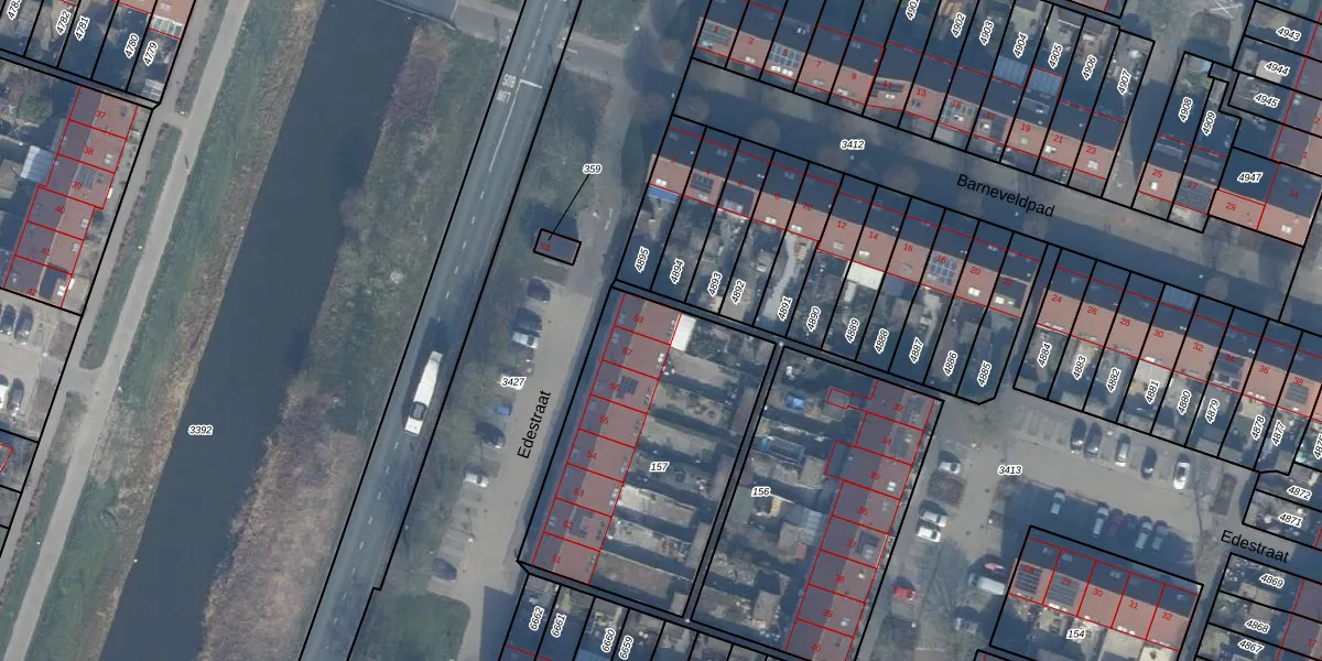 Het perceel waarop Edestraat 58 staat heeft een oppervlakte van 1159 m². Dit is een zeer groot perceel. De perceeloppervlakte wordt geregistreerd door het Kadaster. Gedetailleerde informatie over de maten van dit perceel kunt u vinden in het rapport Kadastrale kaart met maatvoering van Edestraat 58.