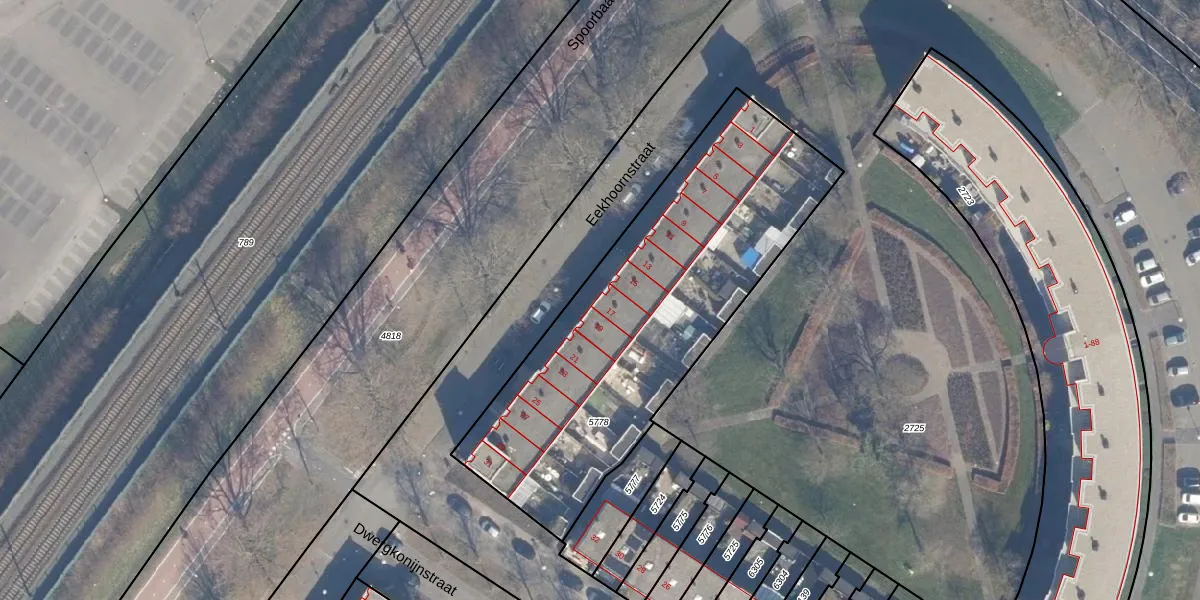 Het perceel waarop Eekhoornstraat 17 staat heeft een oppervlakte van 1771 m². Dit is een zeer groot perceel. De perceeloppervlakte wordt geregistreerd door het Kadaster. Gedetailleerde informatie over de maten van dit perceel kunt u vinden in het rapport Kadastrale kaart met maatvoering van Eekhoornstraat 17.