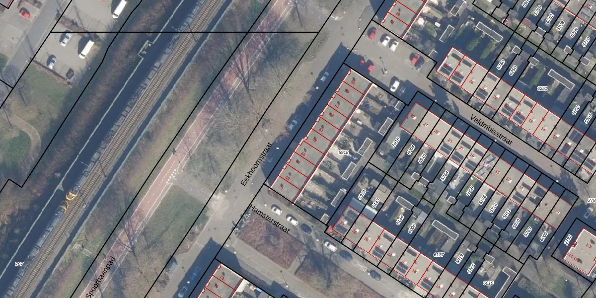 Eekhoornstraat 65 is gelegen op kadastraal perceel AMR04N5918. Deze kadastrale aanduiding is uniek en wordt gebruikt door het Kadaster om eigendomsrechten en andere zakelijke rechten vast te leggen. Het perceel maakt onderdeel uit van de kadastrale gemeente Almere.
