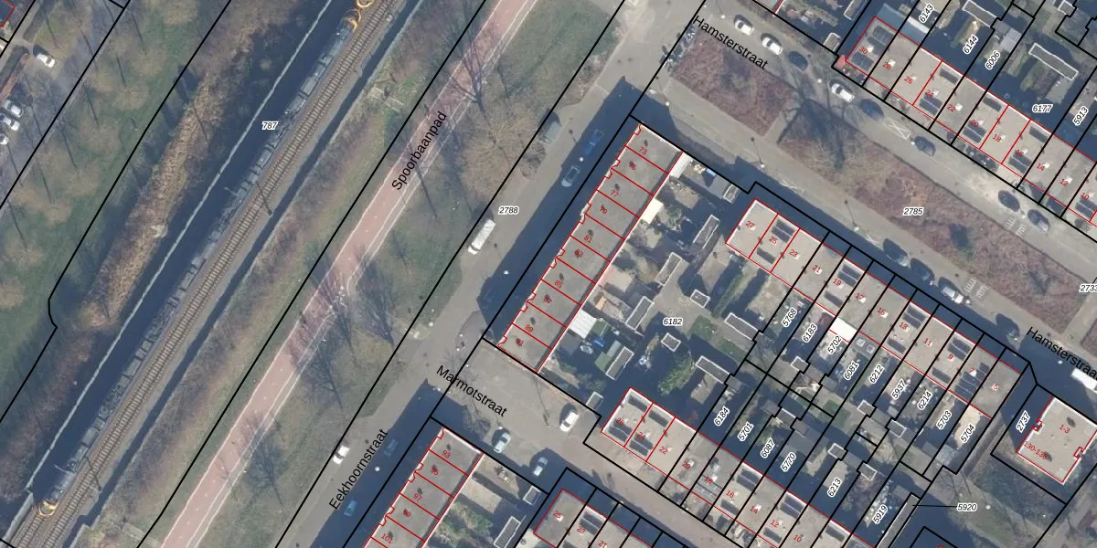 Het perceel waarop Eekhoornstraat 85 staat heeft een oppervlakte van 2188 m². Dit is een zeer groot perceel. De perceeloppervlakte wordt geregistreerd door het Kadaster. Gedetailleerde informatie over de maten van dit perceel kunt u vinden in het rapport Kadastrale kaart met maatvoering van Eekhoornstraat 85.