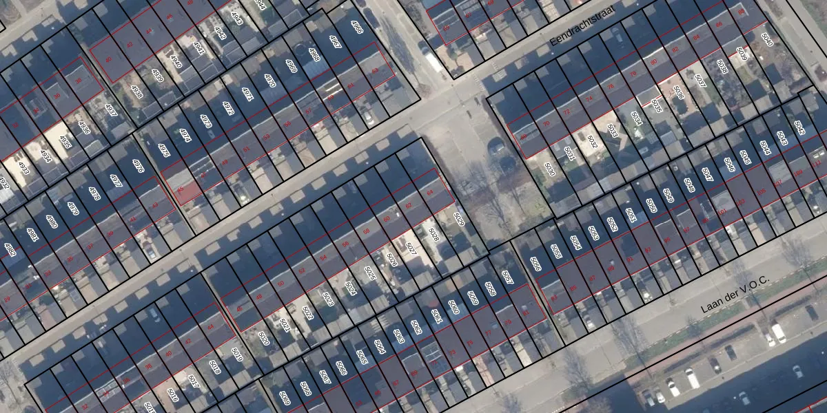 Het perceel waarop Eendrachtstraat 62 staat heeft een oppervlakte van 194 m². Dit is een middelgroot perceel. De perceeloppervlakte wordt geregistreerd door het Kadaster. Gedetailleerde informatie over de maten van dit perceel kunt u vinden in het rapport Kadastrale kaart met maatvoering van Eendrachtstraat 62.