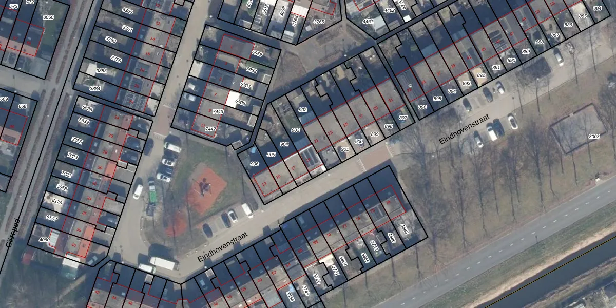 Het perceel waarop Eindhovenstraat 19 staat heeft een oppervlakte van 153 m². Dit is een middelgroot perceel. De perceeloppervlakte wordt geregistreerd door het Kadaster. Gedetailleerde informatie over de maten van dit perceel kunt u vinden in het rapport Kadastrale kaart met maatvoering van Eindhovenstraat 19.