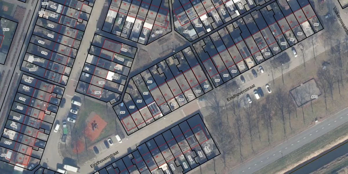 Het perceel waarop Eindhovenstraat 25 staat heeft een oppervlakte van 152 m². Dit is een middelgroot perceel. De perceeloppervlakte wordt geregistreerd door het Kadaster. Gedetailleerde informatie over de maten van dit perceel kunt u vinden in het rapport Kadastrale kaart met maatvoering van Eindhovenstraat 25.
