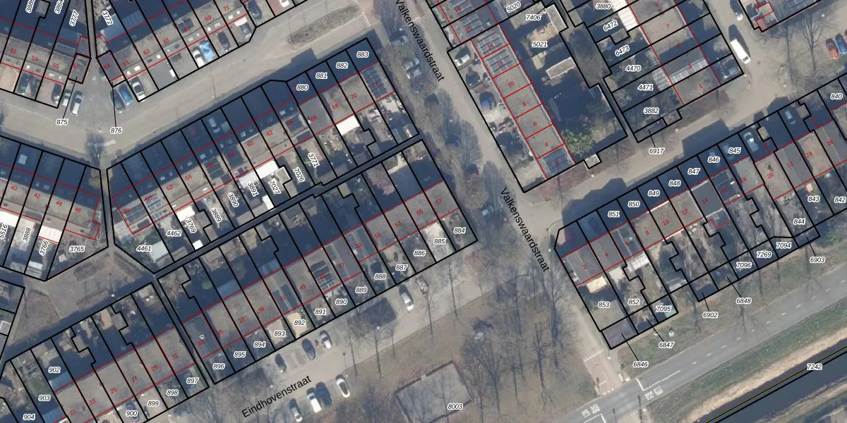 Het perceel waarop Eindhovenstraat 55 staat heeft een oppervlakte van 147 m². Dit is een middelgroot perceel. De perceeloppervlakte wordt geregistreerd door het Kadaster. Gedetailleerde informatie over de maten van dit perceel kunt u vinden in het rapport Kadastrale kaart met maatvoering van Eindhovenstraat 55.
