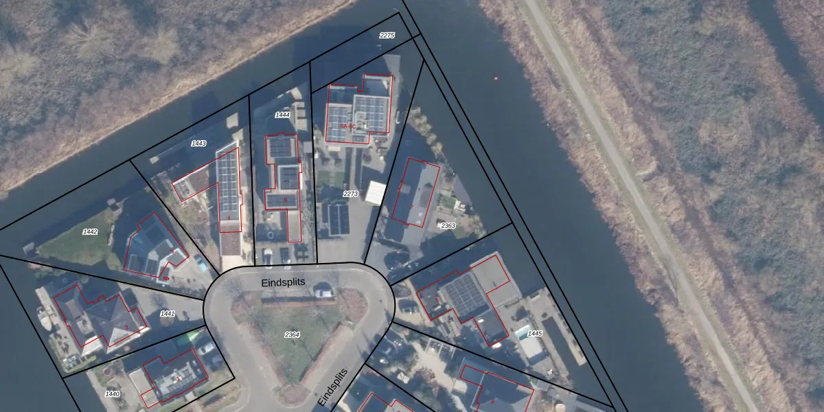Het perceel waarop Eindsplits 7 staat heeft een oppervlakte van 945 m². Dit is een groot perceel. De perceeloppervlakte wordt geregistreerd door het Kadaster. Gedetailleerde informatie over de maten van dit perceel kunt u vinden in het rapport Kadastrale kaart met maatvoering van Eindsplits 7.