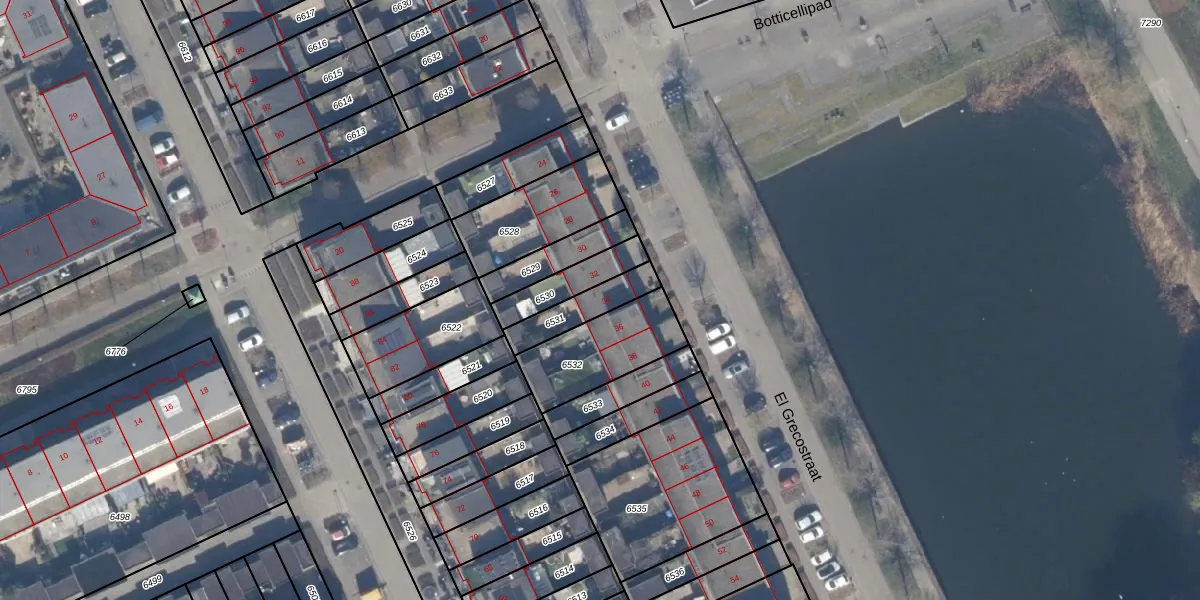 El Grecostraat 34 is gelegen op kadastraal perceel AMR04P6531. Deze kadastrale aanduiding is uniek en wordt gebruikt door het Kadaster om eigendomsrechten en andere zakelijke rechten vast te leggen. Het perceel maakt onderdeel uit van de kadastrale gemeente Almere.